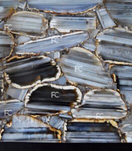 Material we use to construct banded blue lace agate vanity unit