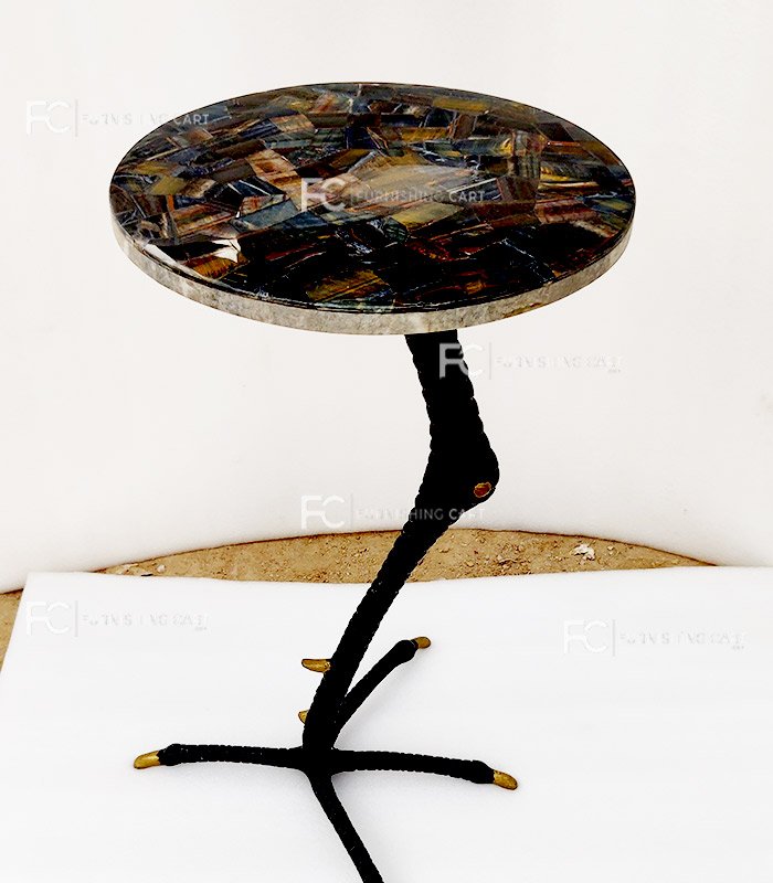 The Bird Leg Table Top – 104BRDSR is a beautifully designed tabletop made from fine stone, marble, and brass. It is handcrafted with care, giving it a premium and stylish look. The stone used in this table top comes from Brazil, which is known for its high-quality natural stone materials.