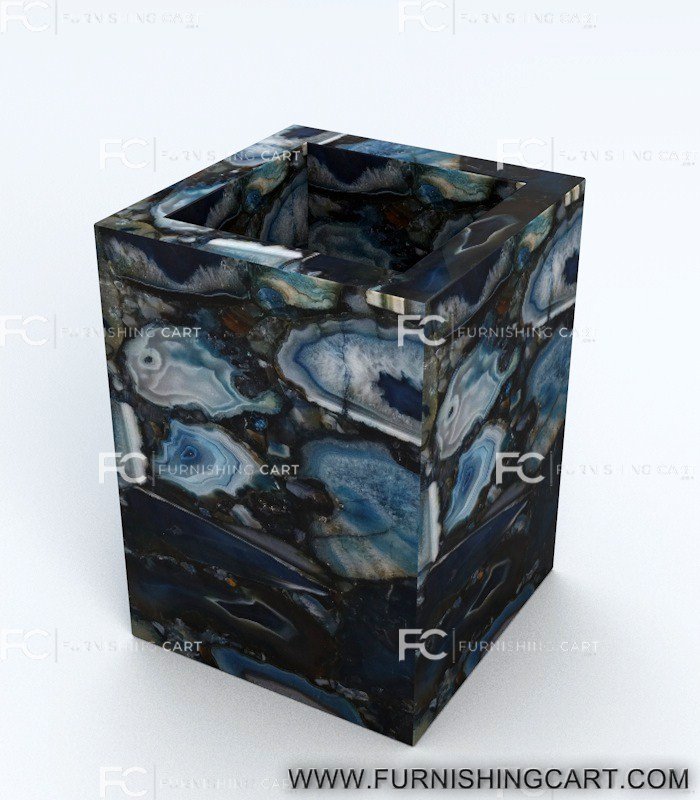 Blue Agate Bath Accessories Set package of 7 piece articles Tissue box, Canister, Soap Dispenser, Brush Holder, Soap Dish, Vanity Tray, Box for anything. High end luxury bathroom and vanity decor.