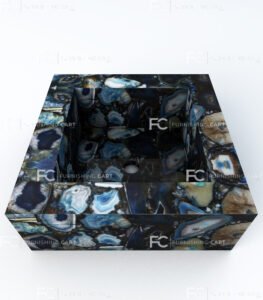 Blue Agate Square Wash Basin LWB-111 is a luxury vessel sink crafted from natural blue agate, a semi-precious gemstone known for its striking blue tones and crystal-like patterns. This basin is carefully handcrafted to achieve a clean square shape, smooth edges, and a polished finish that looks modern and elegant.