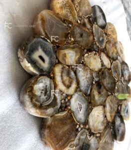 Precious stone used to fabricate golden natural agate handcrafted table
