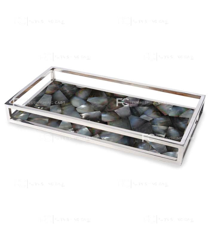 Luxury mother of pearl shell stone serving tray with metal frame