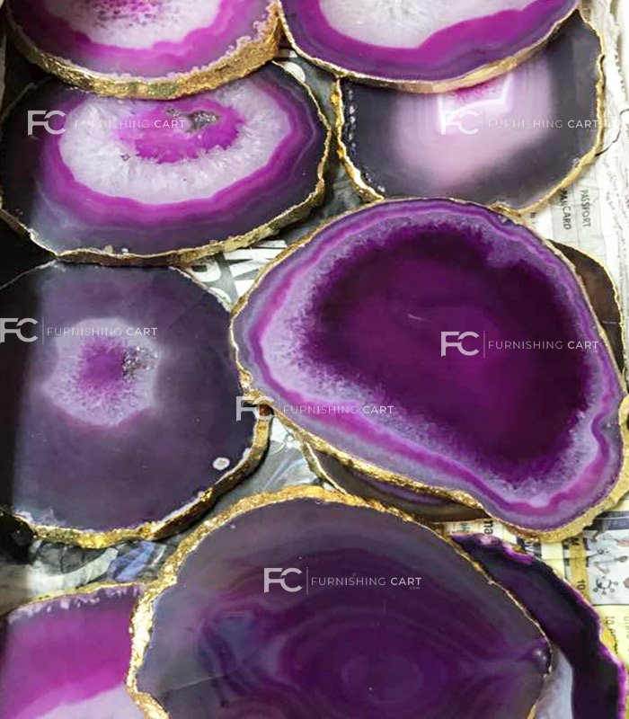 Add a rich, vibrant and luxury touch to your home with our Purple Agate Coasters, crafted from genuine Brazilian agate stone. This premium set includes 4 round coasters, each measuring 4 inches (10 cm) with a smooth 5 mm thickness.