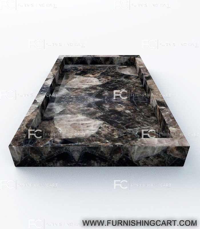 Smoky Quartz Dark semi precious gemstone vanity tray. High end top quality Smoky quartz Dark vanity tray for high end luxury bathroom and vanity area.